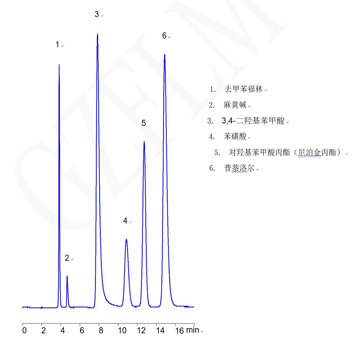 流動相:(乙腈:水:50mM 乙酸銨 pH 5) =(30:10:60)