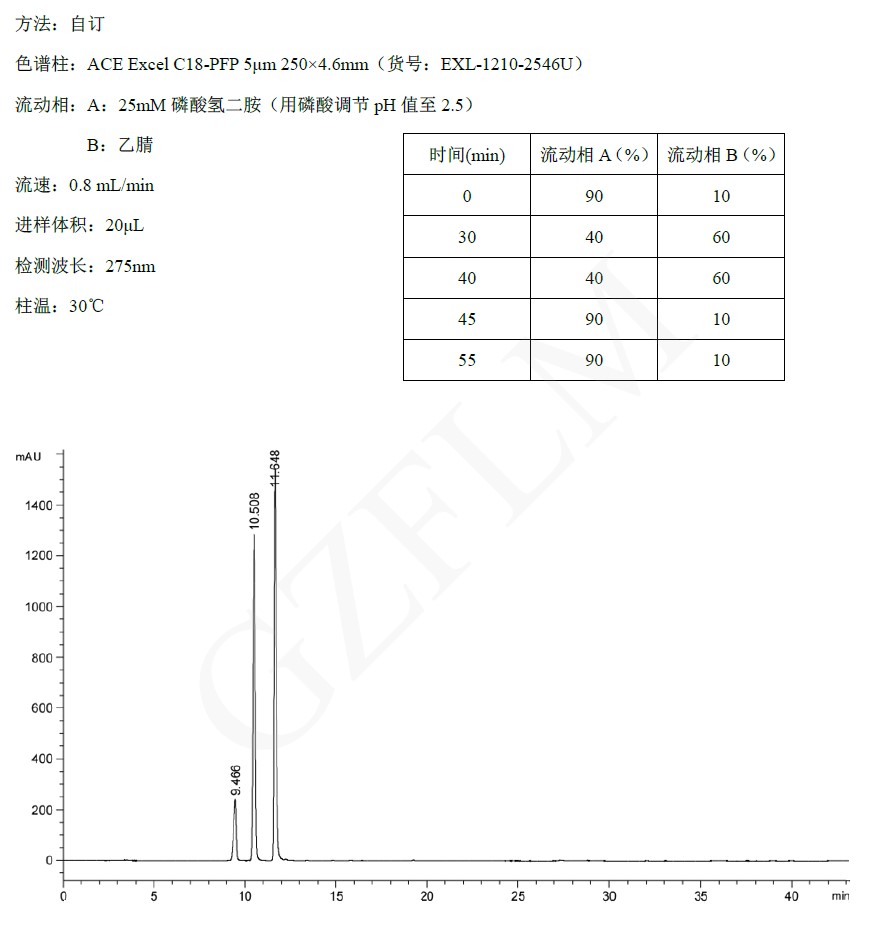 上述應(yīng)用強(qiáng)調(diào)了五氟苯基(PFP)相在位置異構(gòu)體分離中的優(yōu)勢(shì),ACE C18-PFP能夠提供很好的保留和分離效果,從而可以進(jìn)一步優(yōu)化以減少分析時(shí)間。