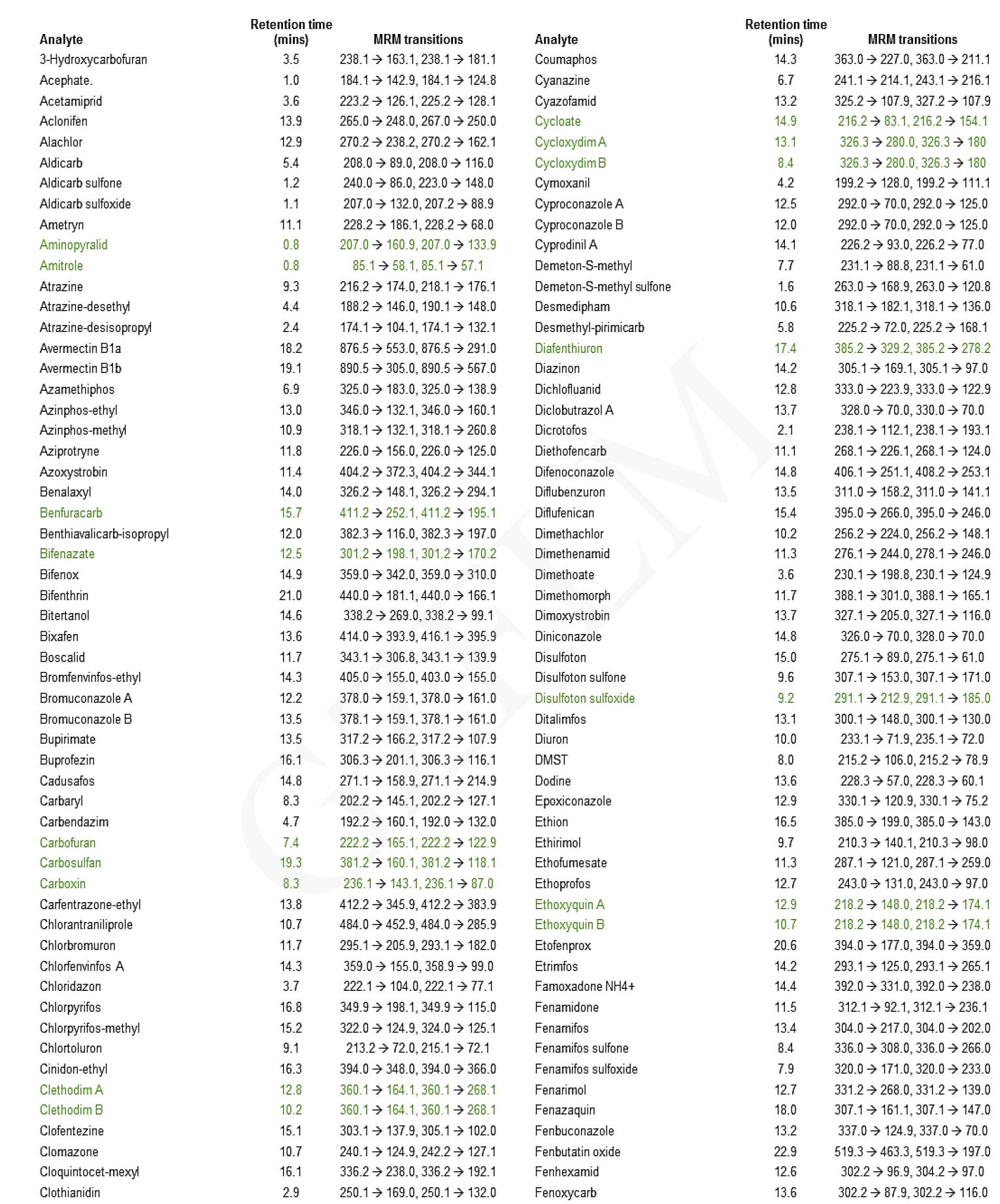 300 種農(nóng)藥的 LC-MS-MS 方法