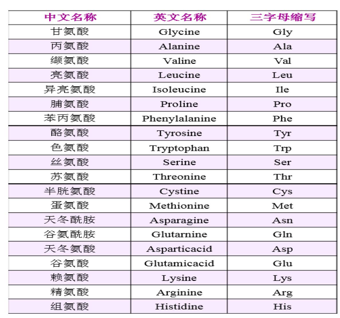 科學(xué)家們已經(jīng)發(fā)現(xiàn)天然的氨基酸有300種,其中基本氨基酸有二十個品種,比較常見的氨基酸有蘇氨酸、賴氨酸、亮氨酸、纈氨酸、異亮氨酸、色氨酸、蛋氨酸、苯丙氨酸8種氨基酸,人體不能夠自己制造的氨基酸,我們稱為必