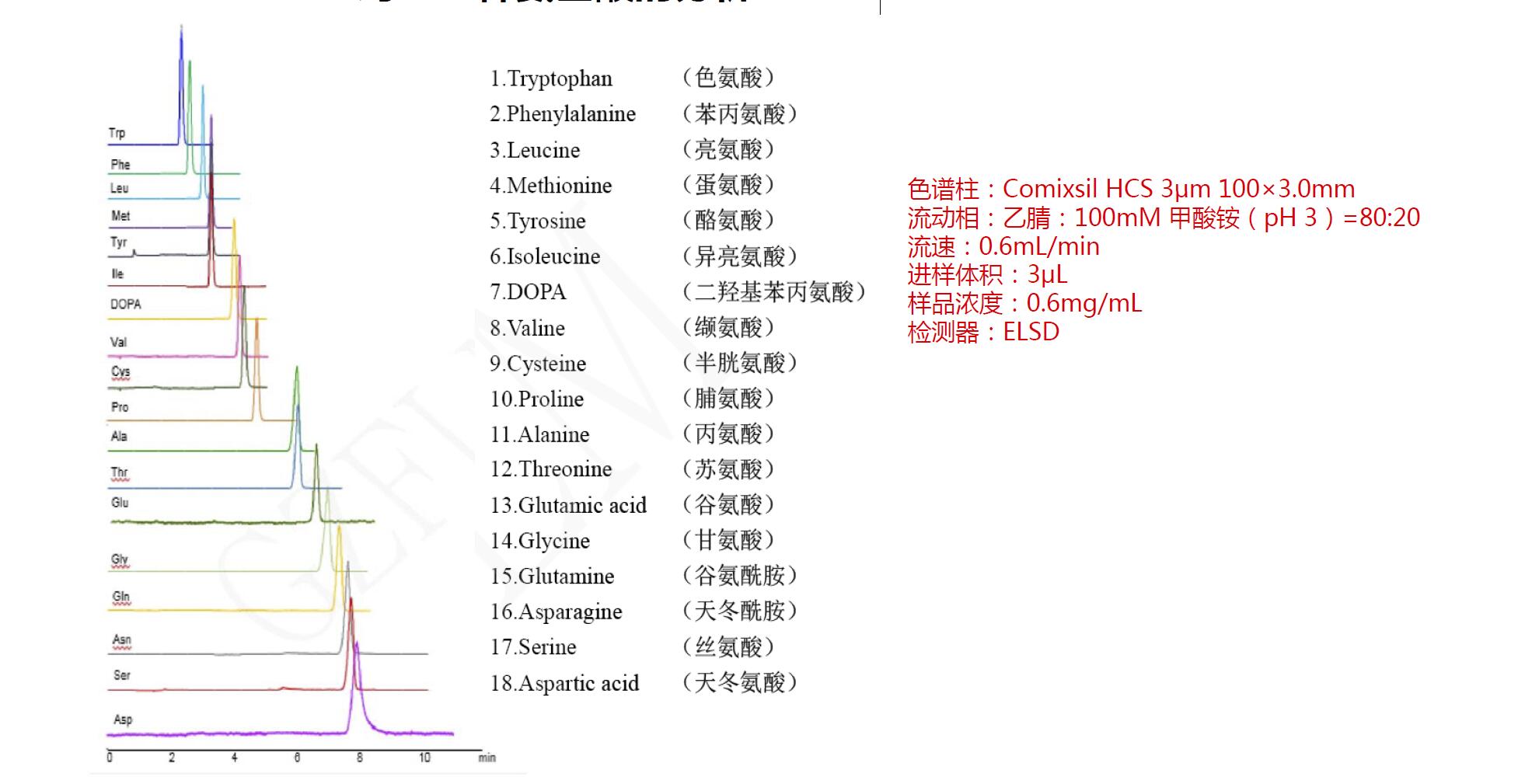 Comixsil RP-100智能柱對20種氨基酸的分析