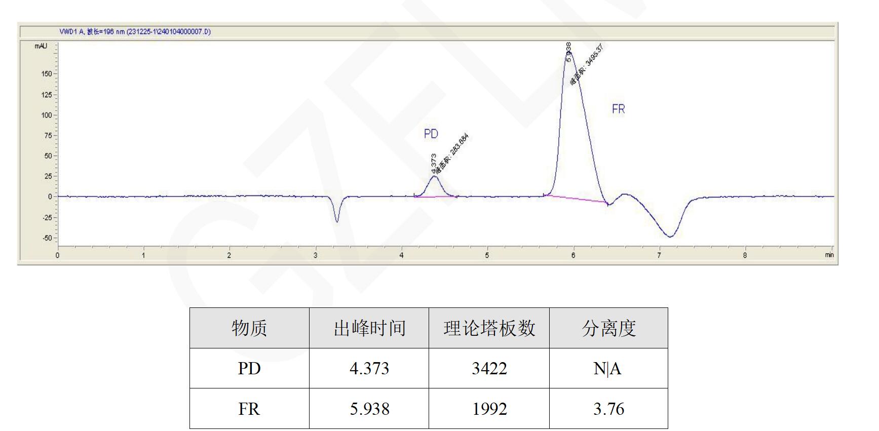 App ID: FLM-B240001 D-吖啶-2-羧酸異構(gòu)體分離 方法:自訂 色譜柱:Chiral AAOA 5u 250*4.6mm(貨號:FMG-AAOA-EONU ) 流動相: 2mM 硫酸銅:IPA=95:5 流速:1ml/min 進樣體積:10 μL 檢測波長:196 nm 柱溫:25℃ ![]() |