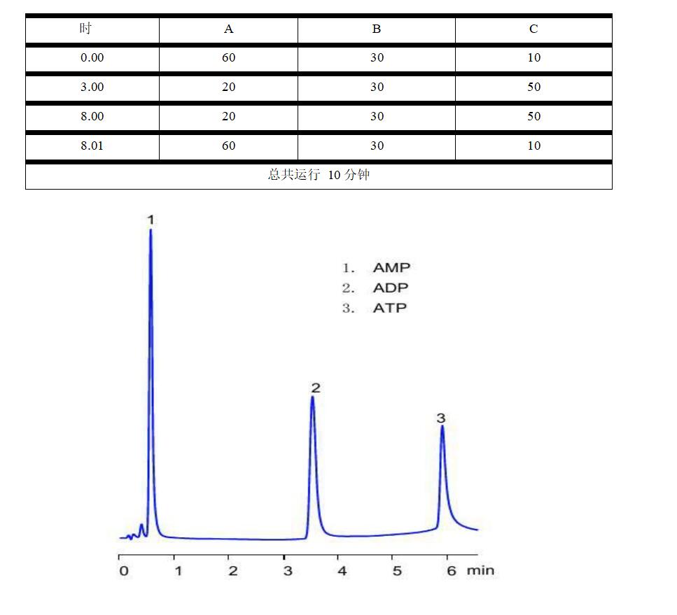 Comixsil HCS 與 HAX 關(guān)于 AMP ADP ATP 的 HPLC 分析研究 App ID: FLM-C240010 色譜柱:Comixsil HCS 3u 100*3.0mm (貨號(hào): FMD-HCS3-YONU) 流速:0.6 mL/min 檢測(cè)波 :275nm 流動(dòng)相:A:水 B:乙腈 C:200mM 乙酸 (pH5.5)