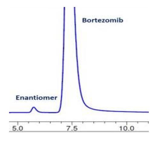 App ID: FLM-B250013 硼替佐米的手性分析 色譜柱:Chiral IND 3μm 250×4.6 mm 貨號(hào):FMG-JY3-I04 流速:1 mL/min 檢測(cè):UV270nm 柱溫:25°C 樣品濃度:1 mg/mL 進(jìn)樣量:5 μ 流動(dòng)相:咨詢 色譜圖: