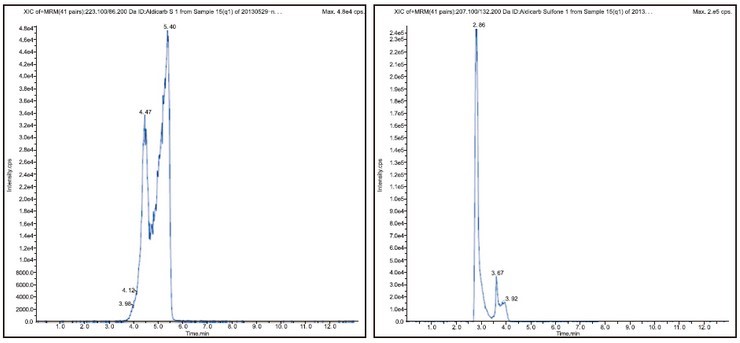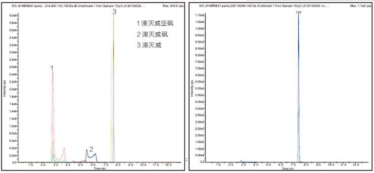 本方法適用于生姜、大米、花生等樣品中涕滅威、涕滅威砜及涕滅威亞砜 LC-MS/MS檢測及確證。