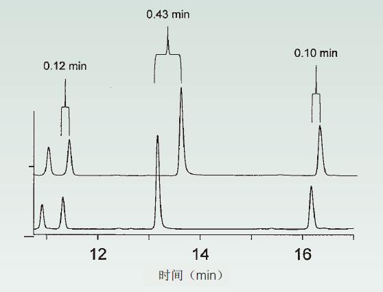 當(dāng)流動相發(fā)生變化時,峰形(色譜峰)通常會向相同的方向移動,以縮短或延長保留時間(保留時間變長或變短);而相對保留(選擇性因子,a)通常會發(fā)生變化。